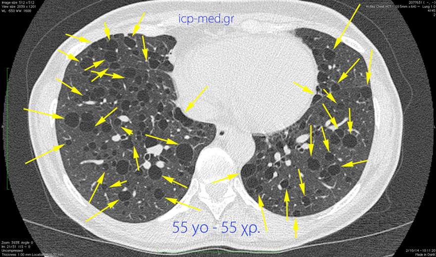 6. CT: numerous Large bullae in a 55-yo post-menopausal♀